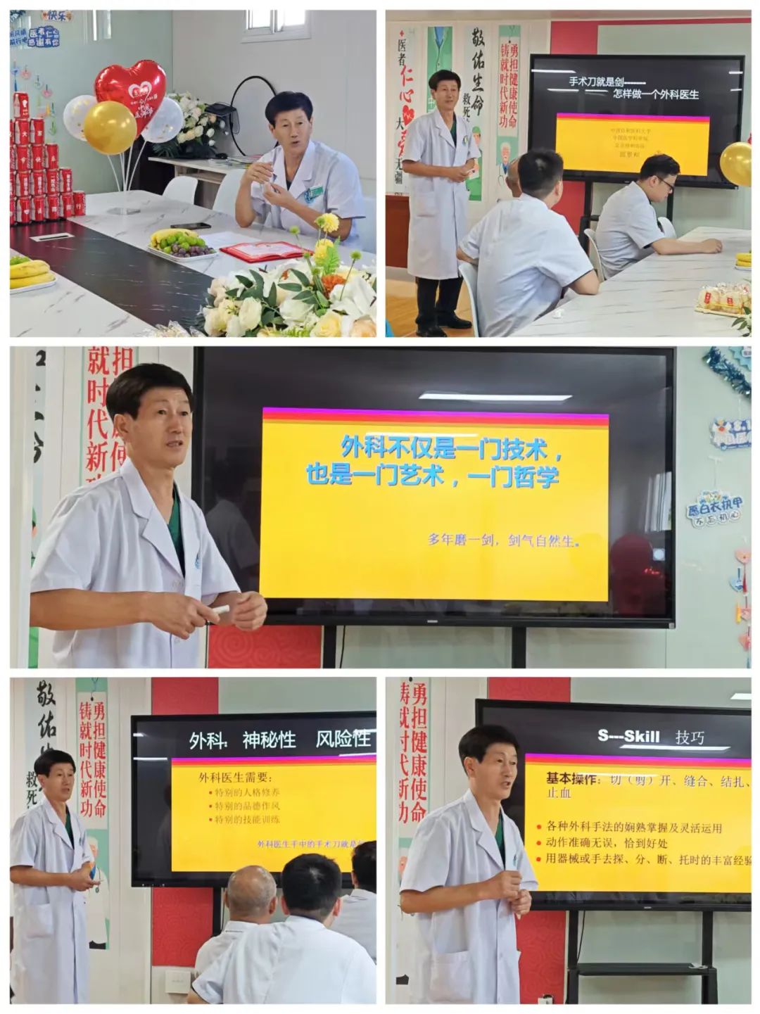 “医”路故事——分享会更是精彩纷呈。济南肛肠医院院长王保学结合自己从外科医生的技术训练到专业修养的成长历程,分享了从医路上的诸多职业感悟,也对医师们的未来寄予了殷切期望。特聘专家彭学美主任则用真挚的语言,讲述了自己从业路上的种种感动与难忘经历:有成功救治患者后的满心喜悦,也有面对困难时的咬牙坚持。分享过程中,大家积极互动交流,让医师们在彼此的故事中加深了理解,也让我们更深入地走进了医师的工作与内心世界。